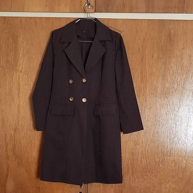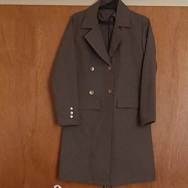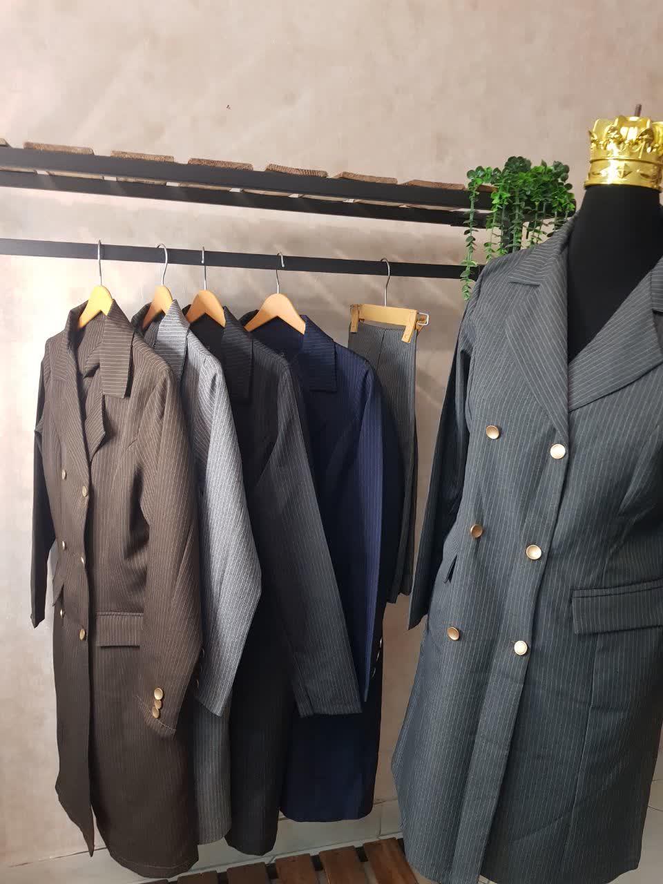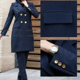 با جابجا کردن دکمه ها سایز را میتوان تغییر داد و قد مانتو 95 و قد شلوار 100