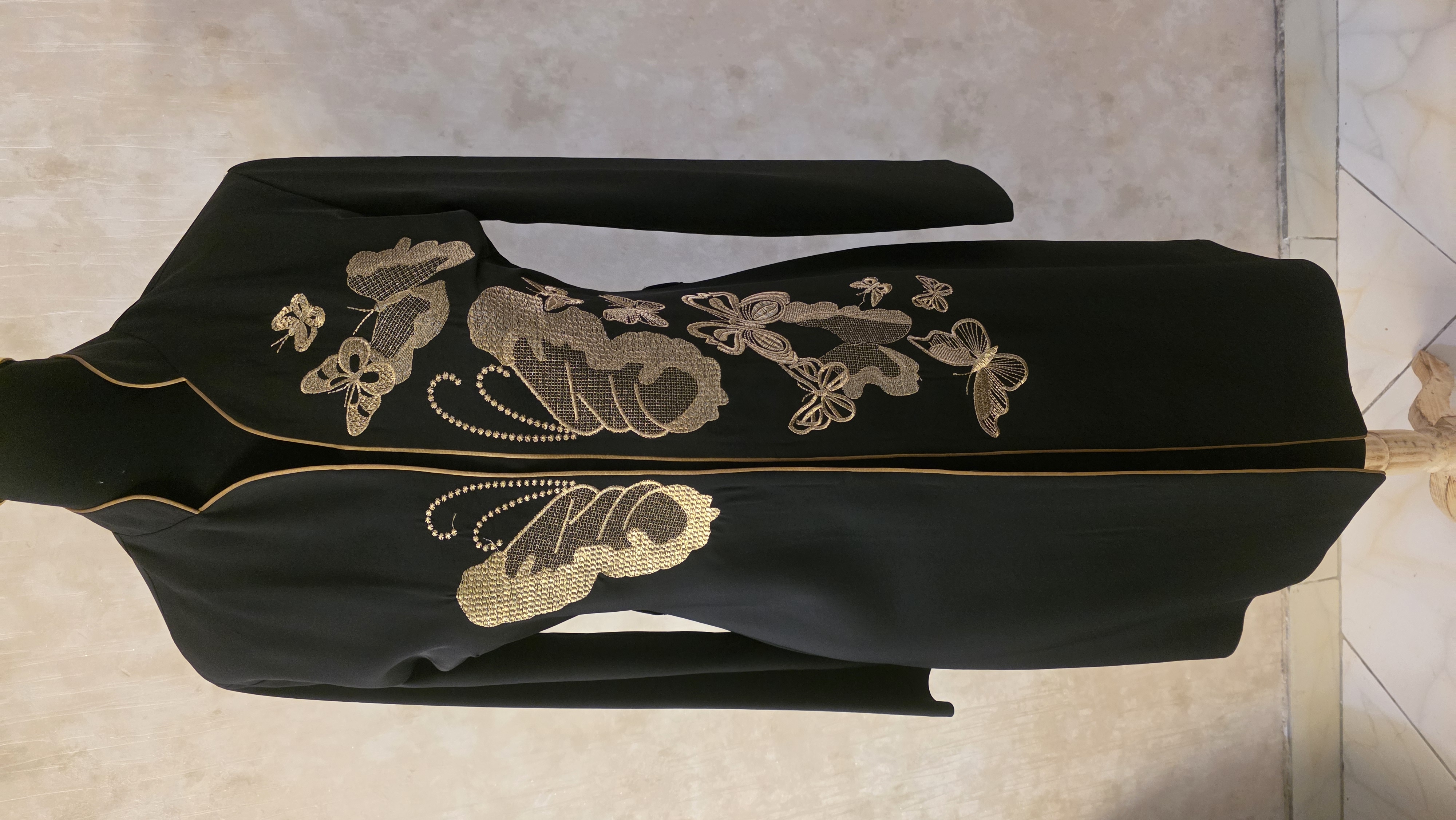 مانتو مجلسی درجه یک قد ۱۰۳ دورسینه ۹۶ سایز ۴۰ قد آستین ۶۰ جای کمربند داره تا با کمربندای زینتی ست شود دکمه مخفی میخوره